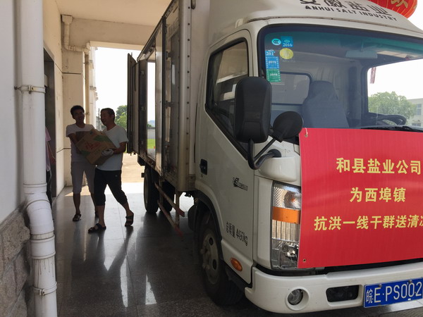 今年入夏以來和縣連日暴雨,受災嚴重,外洪內澇,受災民眾也不在少數。7月26日上午,在縣機關工委的組織下,和縣鹽業(yè)公司同全縣省、市駐和單位為戰(zhàn)斗在抗洪搶險一線的人員送去這個夏天的“清涼”。