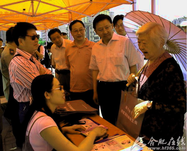 上圖為合肥市民正在向執(zhí)法人員咨詢?nèi)绾伟踩名}的常識(shí)問題